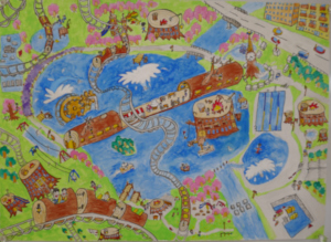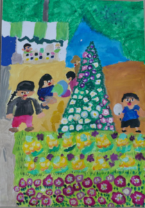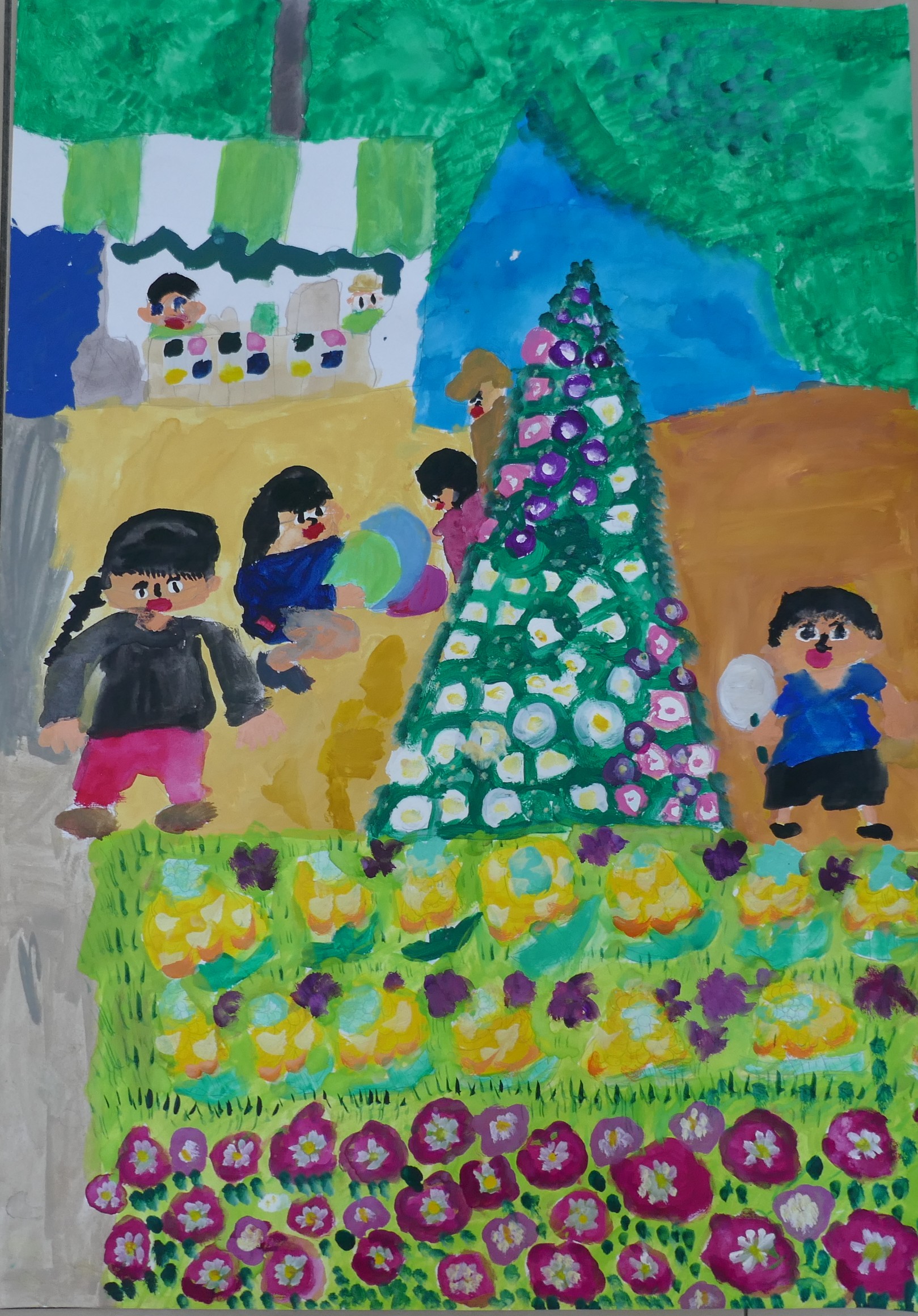 花と緑をテーマとした「花交流フェア写生大会」、近所の公園の未来を想像して描く「未来公園写生会」を開催しています。毎年、多くの力作が集まり、優秀作品には各賞が贈られ、作品展示しています。