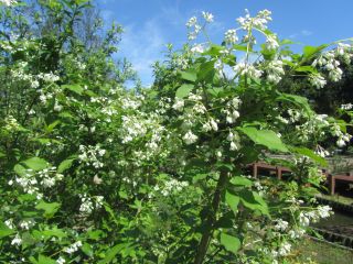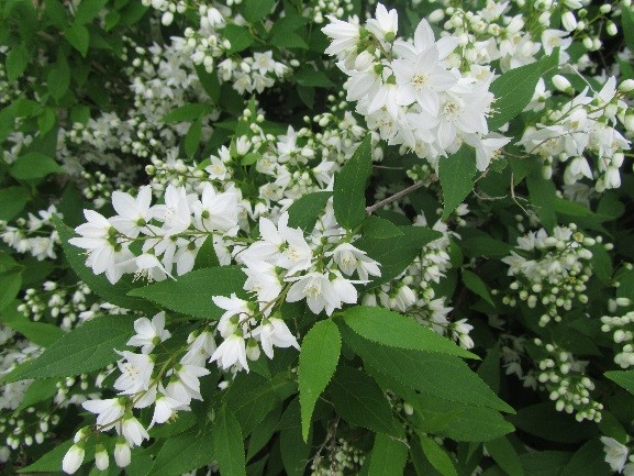 草丈が高くならないほふく性のウツギの仲間です。丈夫な上に、多数の美しい白色の花をつけるため、園芸植物としても人気です。