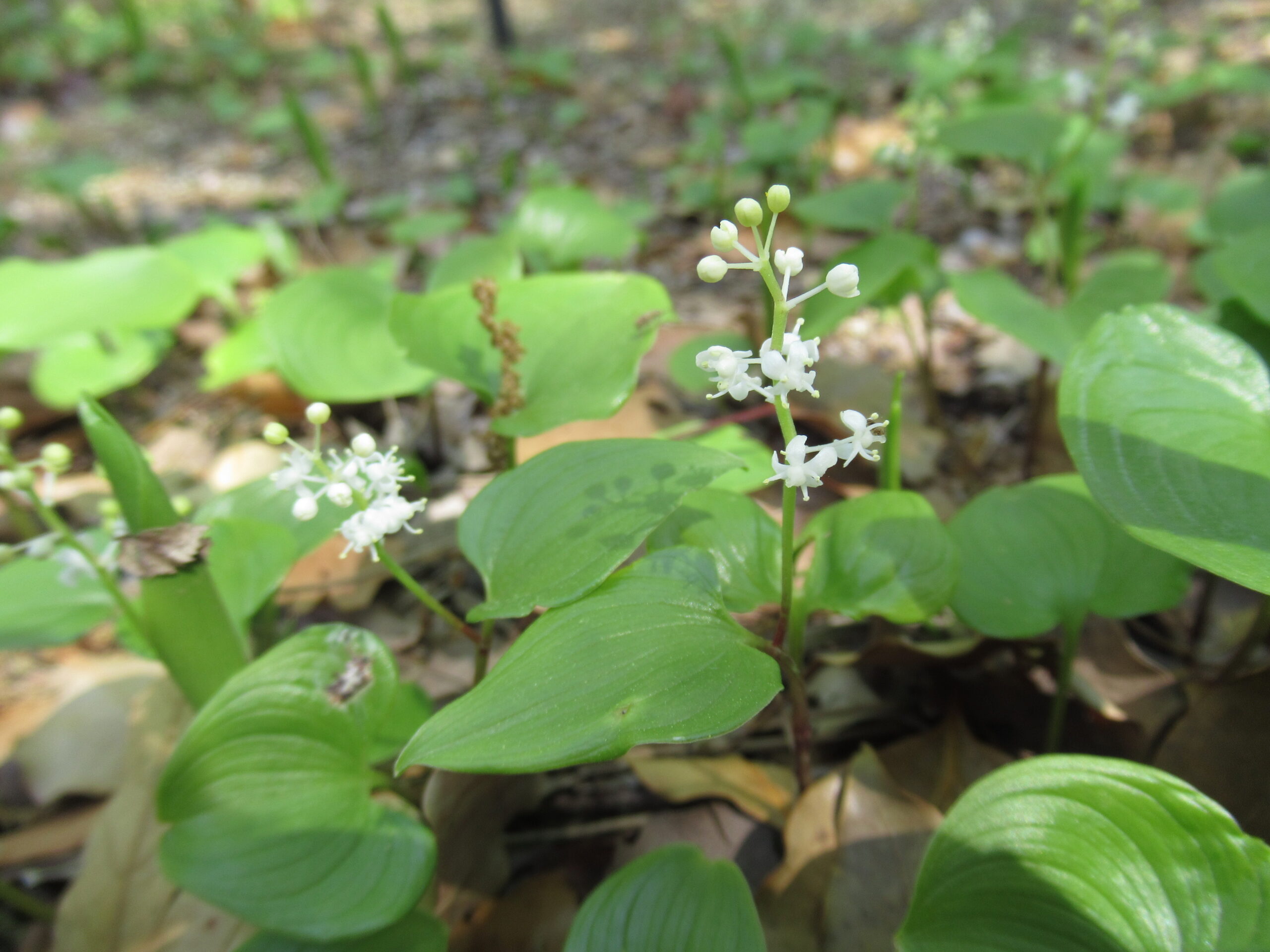 花は白く、3mmほどで秋には赤く丸い果実が出来ます。マイヅルソウは日本列島では北のものほど姿が大きく、南のものほど小さい傾向にあり、南限の屋久島産のものは葉の長さが1cm前後しかありません。