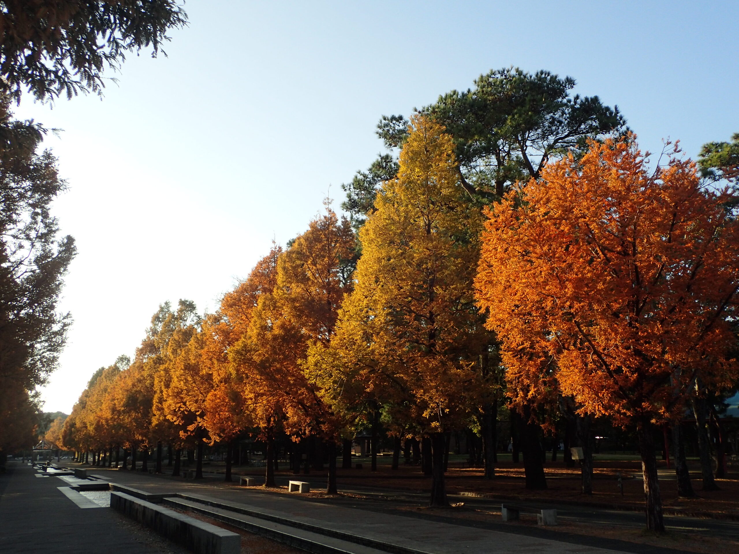 「生きている化石」として、よく知られている木です。日本では恐竜が生きていた白亜紀後期から、第四期更新世にかけての地層からよく化石が見つかっており、愛知県内では春日井市や知多半島での産出が知られています。国内ではいったん絶滅したものの、戦時中に中国・四川省で生きている木が発見され、戦後に日本へ導入されました。カナール沿いに続く並木は約120本あり、セピア色に紅葉します。