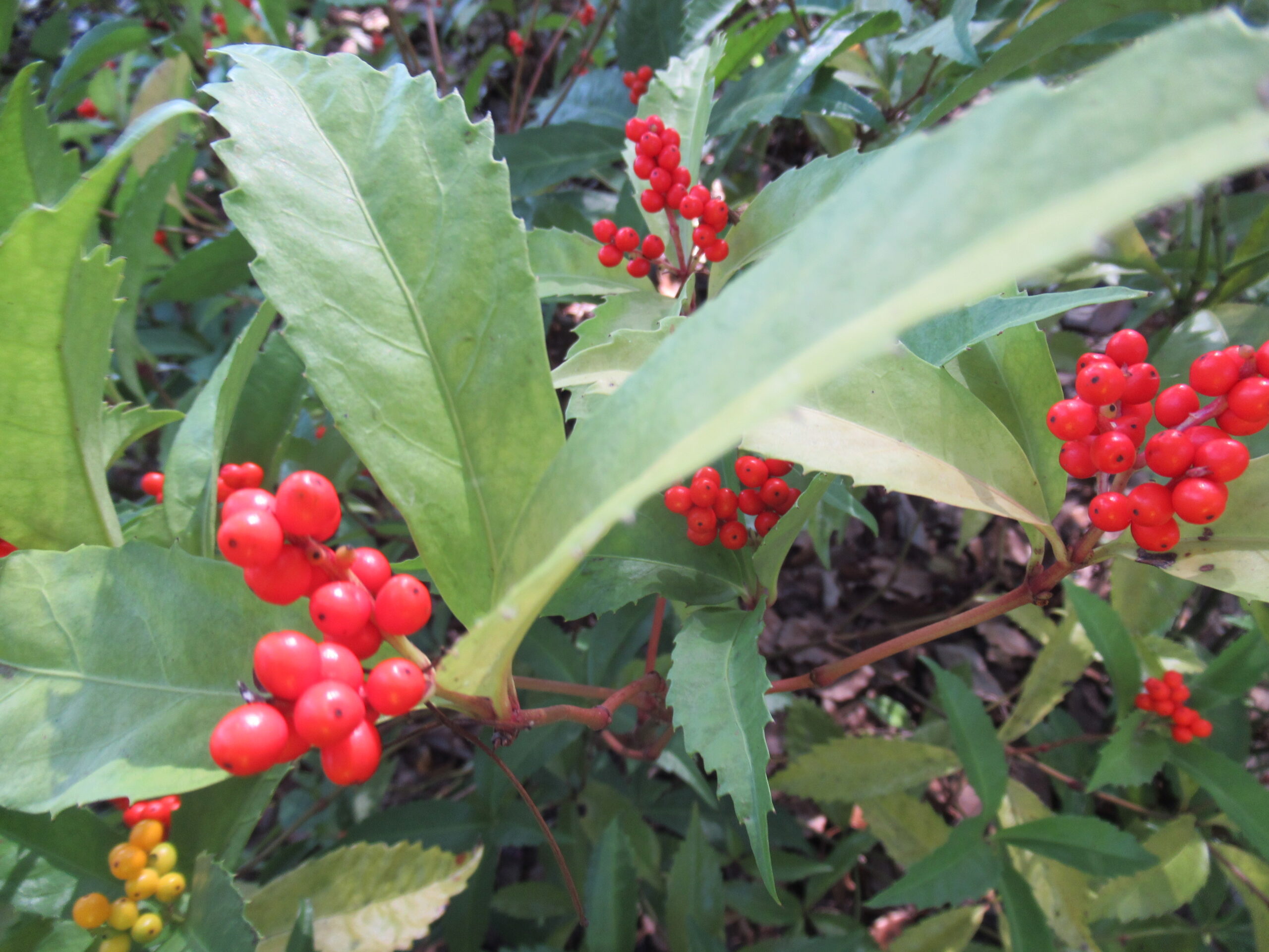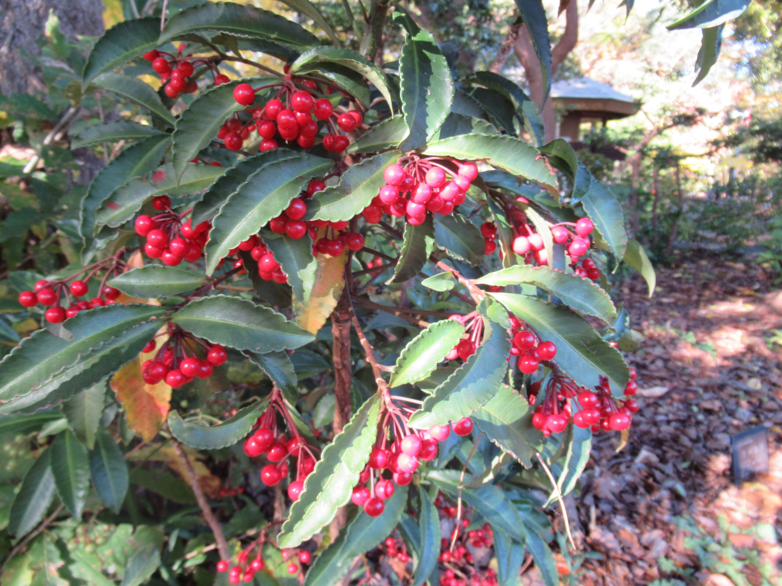 江戸時代に、同じく赤い実をつけるサクラソウ科のマンリョウ(万両)と対比して、センリョウ(千両)の名がつけられました。