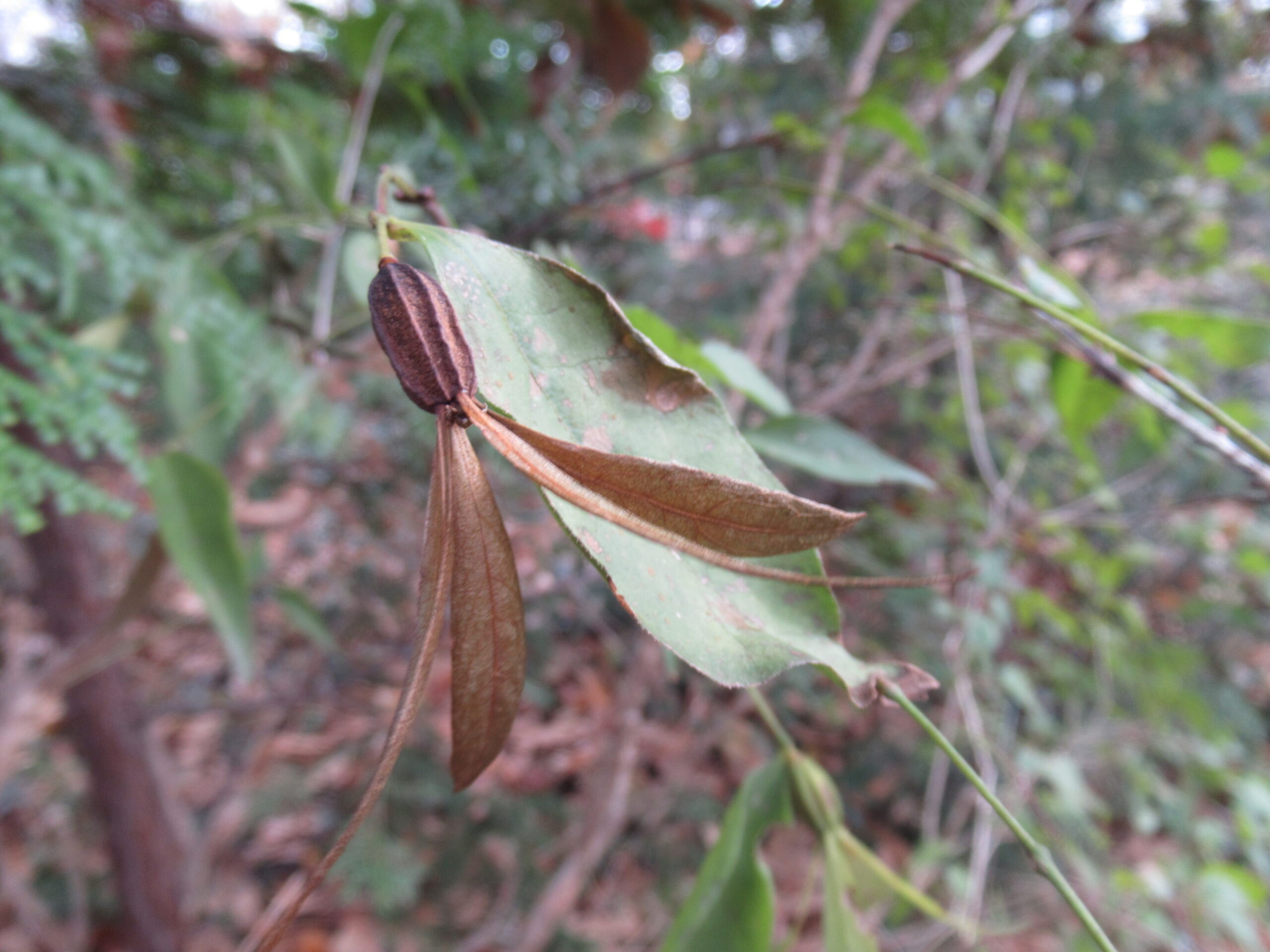 木が生長していくにつれて小葉の数が3枚、5枚、7枚と増えていくので昔から縁起の良い木とされています。冬になっても葉が落ちないためトキワアケビ(常磐木通)の別名があります。